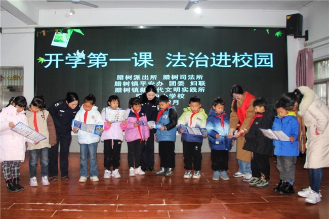 “同学们,你们认识这些毒品吗?”开学之际,腊树派出所联合腊树镇政府、镇司法所,走进腊树镇中心小学,带来了一堂别开生面的“开学第一课”。课堂上,民警用通俗易懂的语言、结合生动有趣的案例,向同学们讲解反电诈、禁毒品、安全用电以及防校园欺凌、交通安全等方面的知识,通过互问互答、情景模拟等形式,让安全知识在孩子们的心中生根发芽。