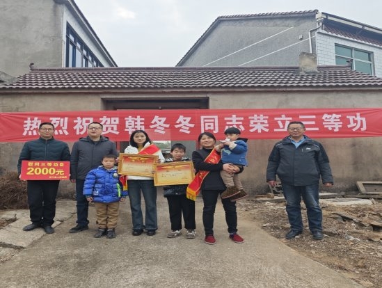 切实做好拥军优属工作,巩固军政军民关系,怀宁县腊树镇党委副书记张鹏带领镇退役军人服务站工作人员和村干部一行,将在部队荣获“三等功”的喜报送到现役军人韩冬冬家中。