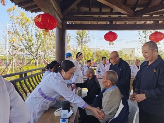 老峰镇创新打造多元化养老服务体系:设立棋艺室、舞韵阁等休闲空间,丰富老年人精神文化生活;依托传统佳节开展写春联、邻里文化节等活动,弘扬孝亲敬老美德;组建爱心义诊服务队,搭建家门口的“健康驿站”,定期提供血压测量、健康问诊等便民医疗服务。针对行动不便老人,推行“上门办、贴心办”服务,足不出户完成养老金认证等事项,让温暖关怀触手可及。