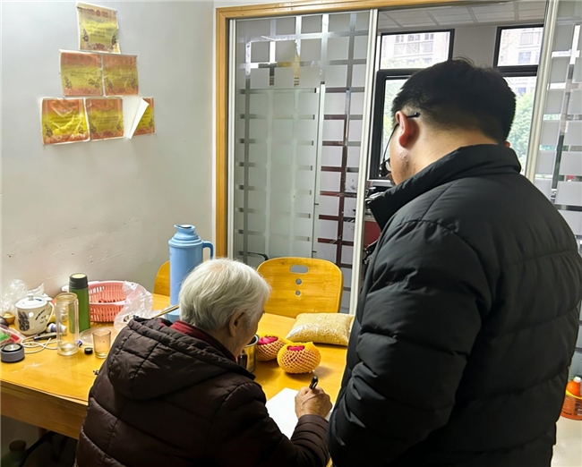 “您看,这里需要您签个名,我扶着您的手慢慢写就行。”针对刘阿姨手部轻微颤抖的情况,工作人员全程耐心引导,协助她完成签名确认。办理过程中,工作人员还不忘检查老人家中的用火用电安全,提醒老人注意燃气使用规范,遇到困难可随时联系社区网格员。“你们不仅帮我办好了手续,还关心我们的生活,就像自家孩子一样贴心!”刘阿姨看着忙碌的工作人员,眼眶不禁湿润。