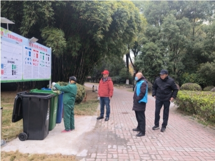 在小区垃圾分类投放点,社区工作人员、网格员、志愿者与保洁人员协同配合,对居民的垃圾投放行为进行现场引导,及时纠正不规范投放行为,手把手演示正确的分类投放方式,帮助居民将分类知识转化为实际行动,切实推动垃圾分类工作落地见效。