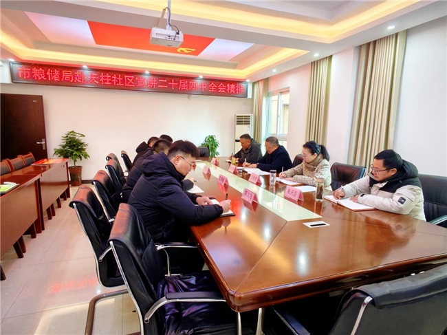 1月22日,市粮食和物资储备局局长陈时彪一行赴天柱社区宣讲二十届四中全会精神,副局长汪筱慧、办公室主任朱天臣、执法监督科科长吴兆连陪同参加。