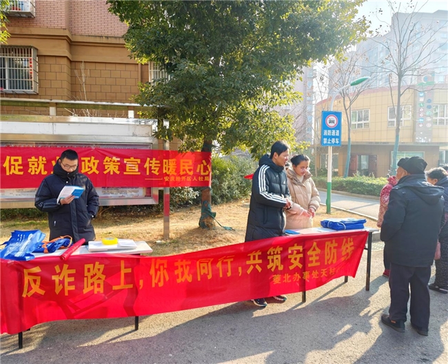 近日,经开区人社局联合菱北办事处天柱社区,在社区广场搭起 “服务台”,将就业政策宣传与反诈知识打包送进居民生活圈,让惠民服务 “零距离” 落地。