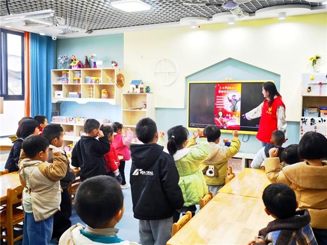 故事宣讲结束后,进入趣味十足的儿歌教唱环节。在幼儿园老师与社区志愿者的带领下,孩子们齐声学唱《学习雷锋好榜样》《我们都是小雷锋》等经典儿歌。“学习雷锋好榜样,忠于革命忠于党”“三月里春风到,雷锋日来到了,你帮我我帮你,团结友爱记心里”,欢快的旋律、朗朗上口的歌词,搭配简单易学的手势动作,孩子们跟着节奏拍手、律动,稚嫩的歌声回荡在校园上空。通过传唱儿歌,孩子们在轻松愉悦的氛围中牢记雷锋精神内涵,将“做好事、爱集体、助他人”的理念刻进心底。不少孩子边唱边主动向身边小伙伴分享自己的“小善举”,主动帮同伴整理衣物、捡拾玩具、扶正小板凳等,用实际行动诠释“小雷锋”的担当。