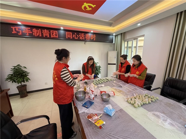 碧玉团圆满屉香,素舂柔艾捣砧忙。忽然指动先春思,一去江南未乞尝。为弘扬传统文化,增进邻里情谊,近日,安庆经开区天柱社区新时代文明实践站开展“巧手制青团 同心话春时”手工青团制作主题活动。