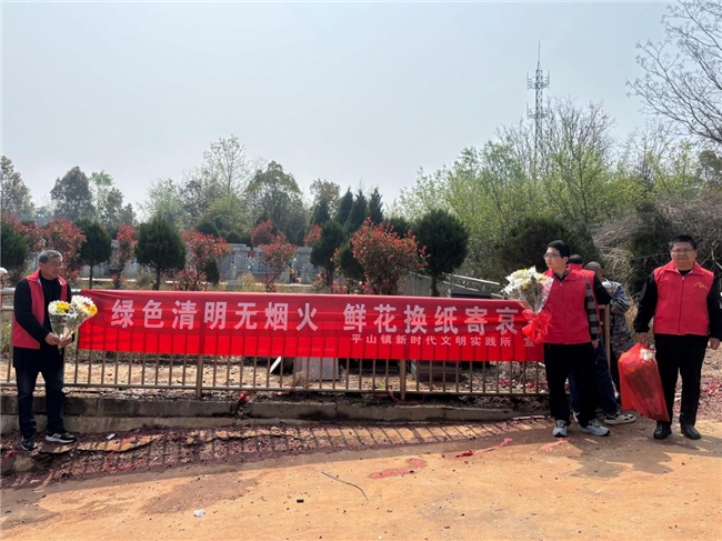 此次活动以鲜花换纸火,以文明取代陋习,不仅让绿色清明理念深入人心,更从源头降低了野外用火风险。下一步,平山镇将持续深化移风易俗,加大宣传引导与服务力度,推动文明祭扫蔚然成风,全力守护辖区生态安全与群众平安。(程颖)
