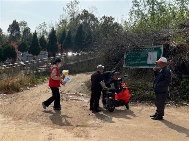 活动现场,工作人员与志愿者在辖区公墓、进山卡口等重点区域设置鲜花兑换点位,主动向前来祭扫的群众提供免费鲜花,用清新素雅的黄白菊花换取群众手中的纸花、冥币等传统祭祀用品,同步宣讲森林防火、文明祭扫相关规定,劝导群众自觉摒弃焚烧纸钱、燃放鞭炮等陋习。志愿者还对祭祀区域残留的纸花、塑料祭品等杂物进行集中清理,维护祭扫场所整洁有序。