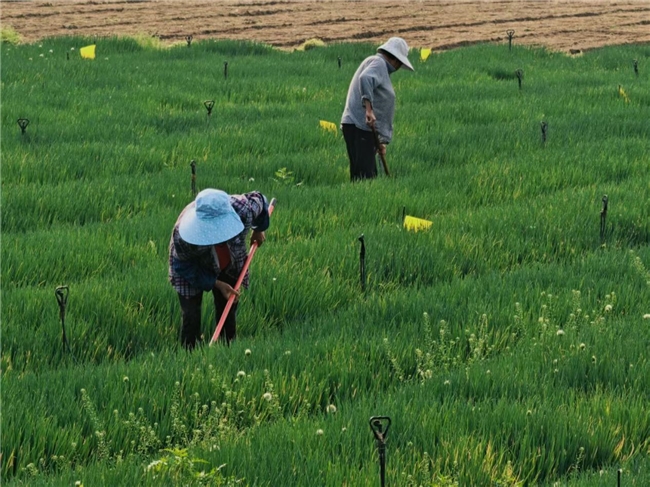 走进同发村的连片农田,绿油油的作物长势喜人,层层叠叠的绿意铺满大地。农户们头戴遮阳帽、手持农具,弯腰俯身,在田间细致地进行除草、松土作业,仔细打理每一株作物。田间的滴灌设施整齐排布,为作物生长提供充足水分,现代化的农业管护措施与农户的辛勤劳作相得益彰,让田间充满了蓬勃的生机与希望。